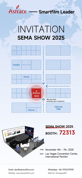 LAS VEGAS, NV – Astrace, the global leader in smart automotive films, is set to make a significant impact at the SEMA Show 2025, taking place from November 4th to 7th at the Las Vegas Convention Center, International Pavilion. The company will showcase its cutting-edge innovations at Booth 72313, inviting industry professionals and enthusiasts to experience the future of automotive glass.