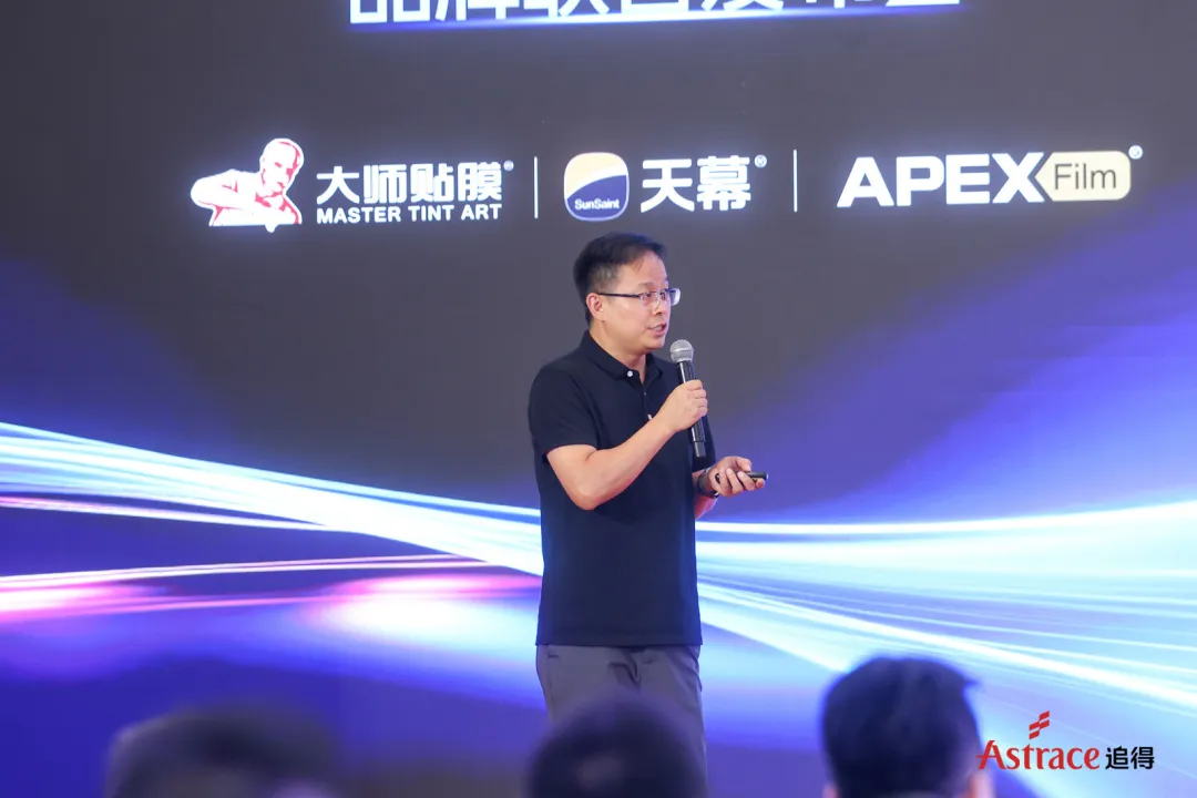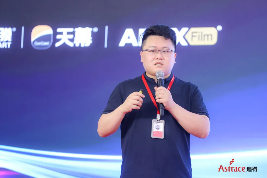 He admitted that construction difficulty has greatly increased with panoramic roofs, but the team has successfully overcome technical bottlenecks. They innovatively proposed the “cross positioning and star-pattern bubble removal” installation method, effectively solving the core problem of panoramic roof film application. Mr. Li then demonstrated the full construction process and announced that Astrace will establish a technical support alliance to better serve photoelectric film projects.