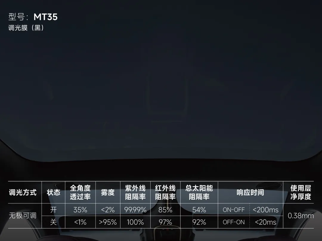 This is the ultimate solution for Tesla panoramic roofs — the Astrace Smart-Control Dimming Film, helping drivers completely eliminate the “mobile sauna” experience and enjoy a cool, comfortable, and private ride. The Astrace Smart-Control Dimming Film has already been launched under its sub-brands Master Film, Tianmu, and Opass.