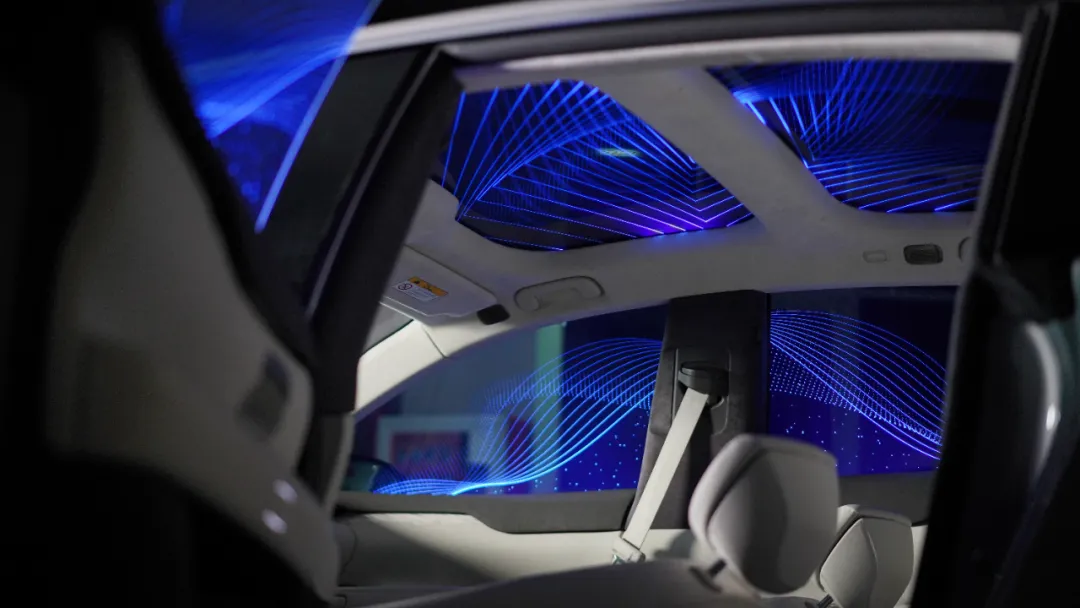 Mercedes-Benz’s Digital Meteor Headlights can project warning patterns onto the road; Rolls-Royce’s Starlight Headliner weaves a galaxy with 1,340 optical fibers; and Zeekr X’s Ice Block ambient lighting brings the Northern Lights into the cabin. These innovations reveal a clear trend: lighting is reshaping the way humans interact with vehicles. Designers have been exploring every possible surface that can carry light aesthetics—interior panels, fabric ceilings, displays, even the road as a projection screen. Yet, one physical barrier has remained unbroken—the glass medium.